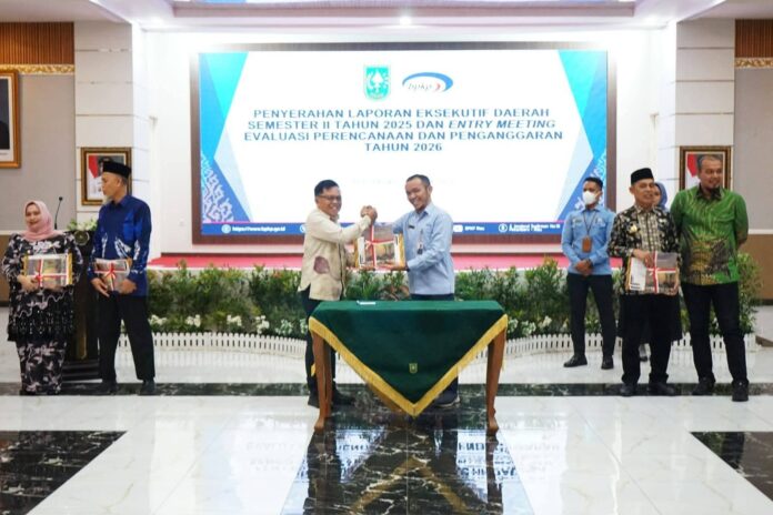 PEKANBARU (TRANSMEDIA.CO)– Bupati Kepulauan Meranti, AKBP (Purn) H. Asmar menghadiri kegiatan penyerahan Laporan Eksekutif Daerah Semester II Tahun 2025 sekaligus Entry Meeting evaluasi perencanaan dan penganggaran tahun 2026 yang digelar di Balai Pauh Janggi, Gedung Daerah Komplek Kediaman Gubernur Riau, Jalan Diponegoro, Kamis 5 Maret 2026.