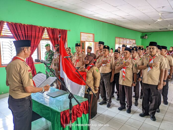 MERANTI (TRANSMEDIA.CO)– Kepengurusan Majelis Pembimbing Ranting (Mabiran), Kwartir Ranting (Kwarran), dan Dewan Kerja Ranting (DKR) Gerakan Pramuka Merbau memasuki babak baru. Wakil Ketua Organisasi dan Hukum Kwartir Cabang Gerakan Pramuka Kepulauan Meranti, Sudandri, SH, melantik jajaran pengurus masa bakti 2025–2028 di Aula Kantor Camat Merbau, Teluk Belitung, Rabu 21 Januari 2026.