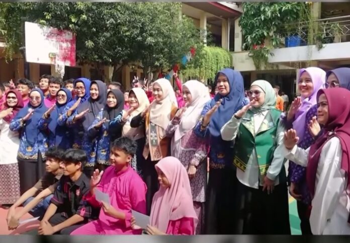 PEKANBARU (TRANSMEDIA.CO)-Ketua Tim Penggerak Pemberdayaan dan Kesejahteraan Keluarga (TP PKK) Provinsi Riau, Henny Sasmita Wahid, mengunjungi SMK PGRI Pekanbaru dalam rangka menggerakkan tiga program unggulan. Kegiatan ini berlangsung pada Jumat 17 Oktober 2025.