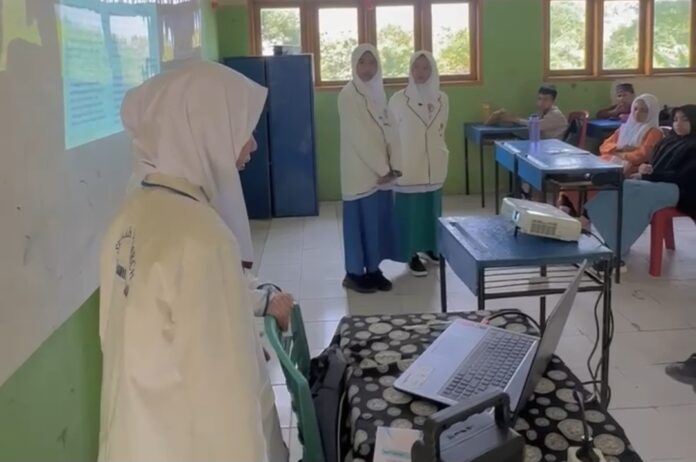 Lima Siswi SMK Abdurrab Beri Penyuluhan “Pola Hidup Sehat Tanpa Parasit” di Mts Hasanah