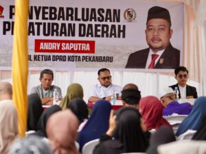 PEKANBARU (TRANSMEDIA.CO)-Wakil Ketua DPRD Andry Saputra menggelar kegiatan sosialisasi Perda tentang Kawasan Tanpa Rokok (KTR), kepada masyarakat di Kota Pekanbaru, Rabu 26 November 2025.